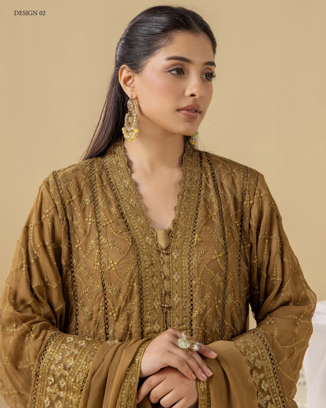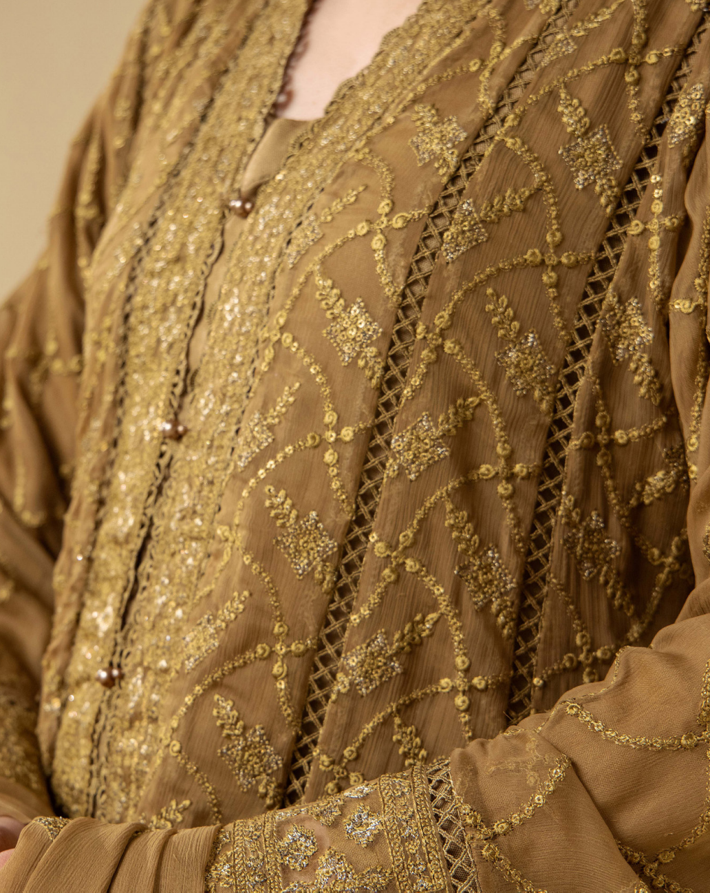 Adan’s Libas | Chiffon Gown vol-5 Stitched “Brown” Formal Festive Wear | D2-3pc