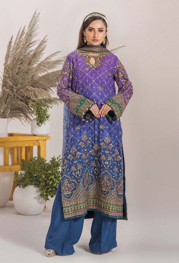 • Digitally Printed & Embroidered with Hand Embellished Chiffon Stitched Shirt 1pc