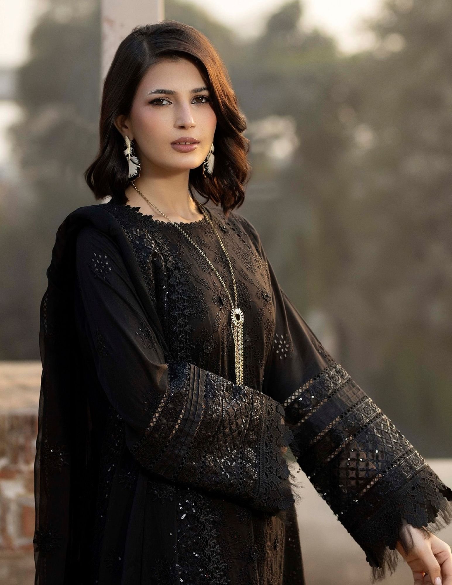 Adan’s Libas | Tradition Vol-2 Chikankari stitched Lawn 26 Formal Festive Wear “Black” D04 | 3pcs.