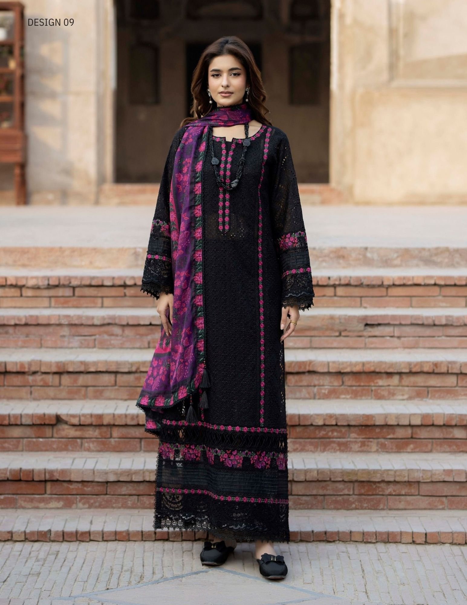 Adan’s Libas | Tradition Vol-2 Chikankari stitched Lawn 26 Formal Festive Wear “Black” D09 | 3pcs.