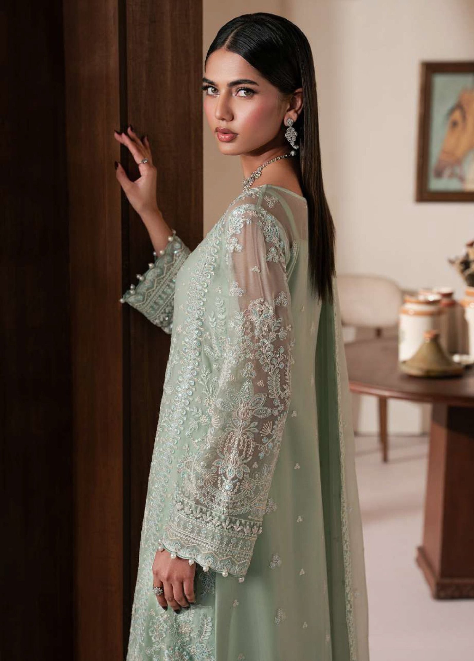 • Embroidered & Sequined Chiffon Sleeves