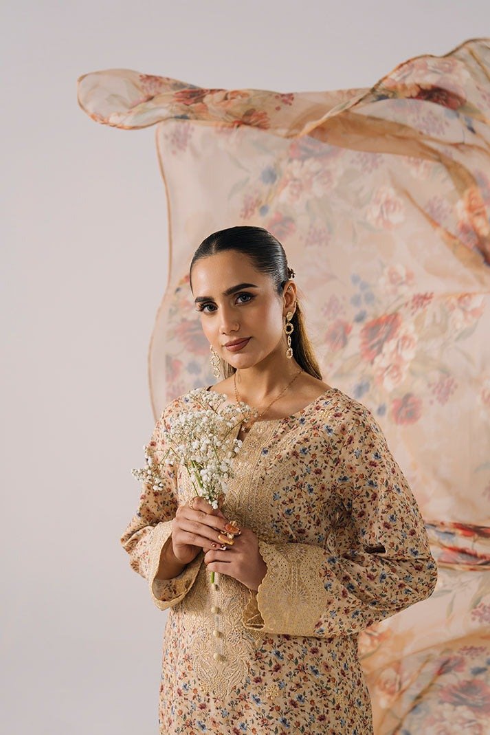 • Printed Lawn Shirt Featuring Embroidery on Sleeves