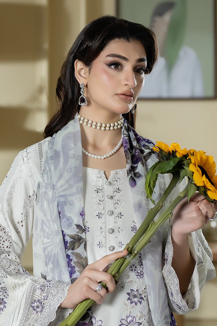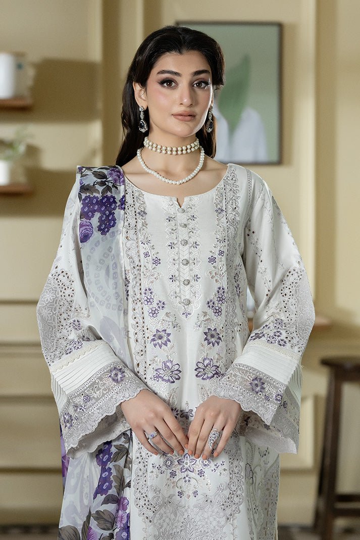 Imrozia Serene | Opaline Drape Silk’26 Moonviel Stitched “Dust White” | ip-187-3pc