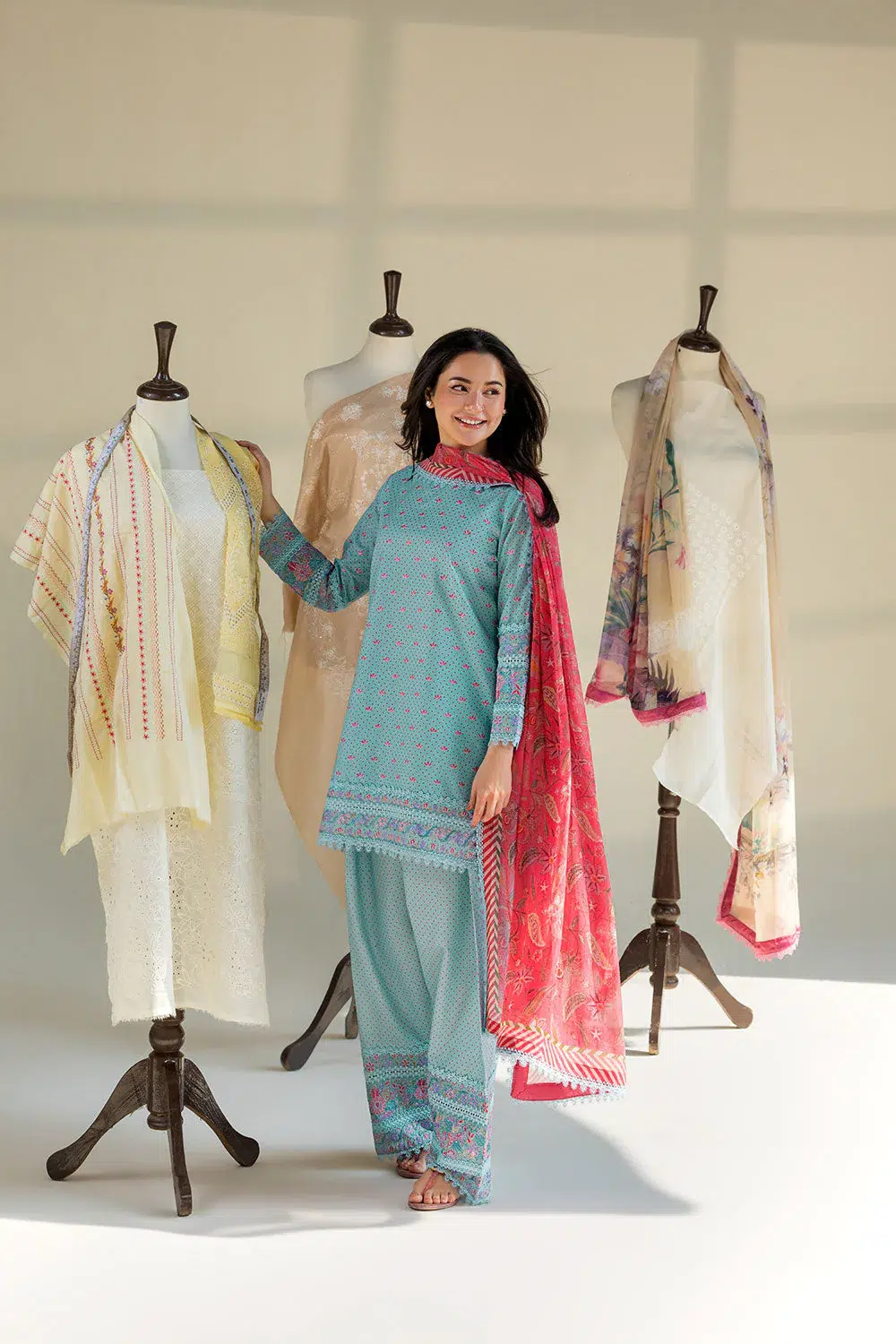 • Embroidered Print Lawn Sleeves & Trouser Border