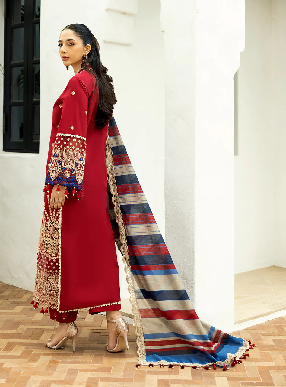 Zainab Chottani Chikankari 25 | Deep Red | Unstitched | Festive wear| Elma – 3A | 3 pc set.